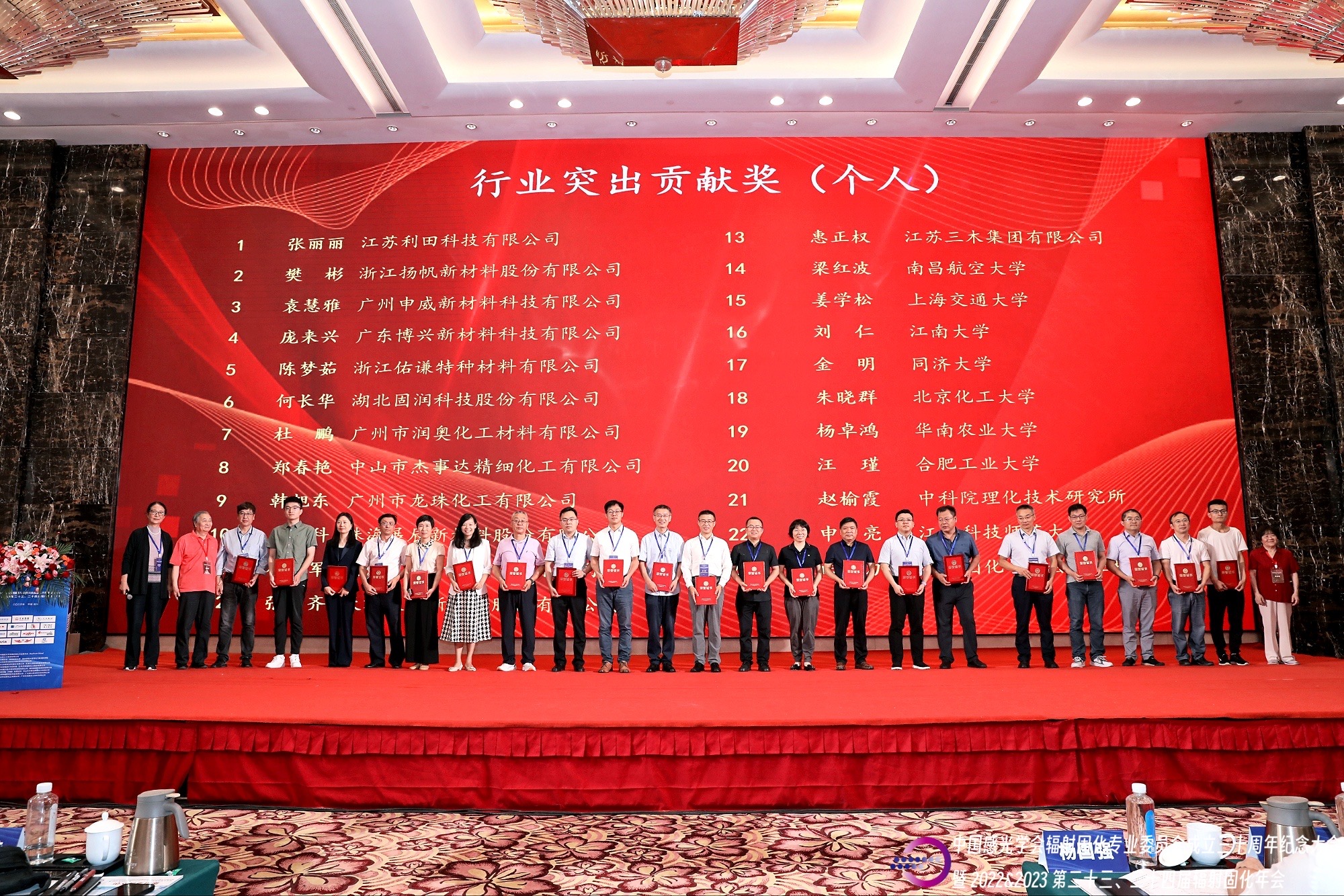 7月19日,中国感光学会辐射固化专业委员会成立三十周年纪念大会暨2022&2023第二十三、二十四届辐射固化年会在江苏宜兴隆重召开。会上对为行业发展做出突出贡献的企业和个人进行了重点表彰。久日新材荣获企业成长奖、科技创新奖、科技进步奖、科技成果奖。董事长赵国锋博士荣获行业杰出贡献奖,副总裁张齐博士荣获行业突出贡献奖,研发中心技术骨干董月国获得青年创新奖。